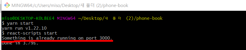 문제상황 : 포트 3000이 충돌로 react가 실행이 안됨